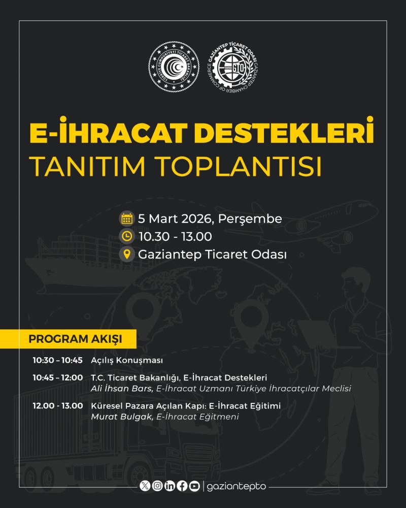 6 Şubat 2026 - 6 Şubat 2026 (Tamamlandı)Gaziantep Dış Ticaret Zirvesi