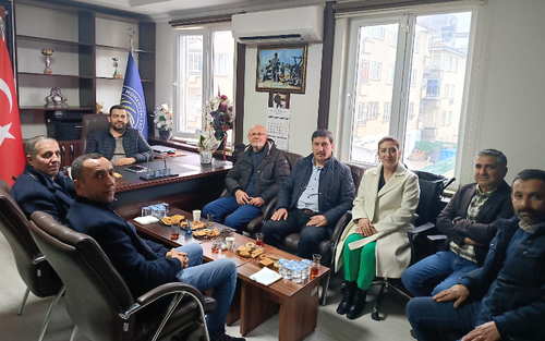 7 nolu Yaş-Kuru Meyve ve Sebze Toptan Ticareti Meslek Komite Başkanı Bülent Kaya ÖZDEMİR, meclis üyeleri Sadık KOÇAK, Sait GANİDAĞLI, komite başkan yardımcısı Ümit AĞCALAR , komite üyesi Mehmet TÜRK ve hal hakem heyeti üyesi Metin EROĞLU‘ndan oluşan heyet yapılan ziyarette sektörle ilgili yapılması gerekenler konusunda istişarede bulundular.